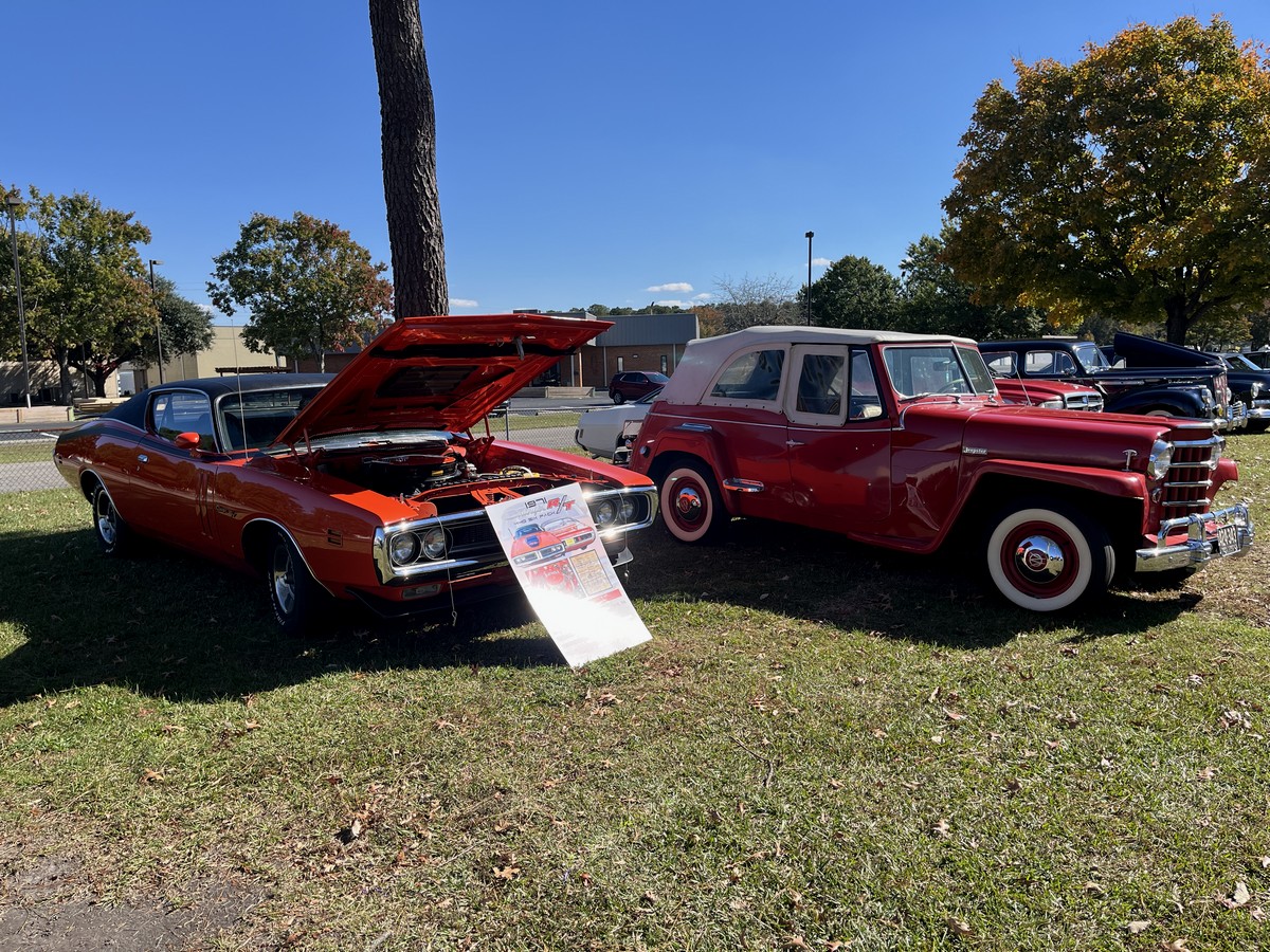 | May 3, 2025 - St. Patrick's Academy Car Show - Previously held at Sajo Farms in Virginia Beach, the St. Patrick's Catholic Academy Annual Car Show moved to the school grounds this year. The change of venue and not having a show at all last year cut down on participants, but we still had a good percentage of TRAACA folks showing their vehicles. Alfonso and Patrizia Ludovici brought their 1949 Mercury sedan, Keith Colonna had two of his 1956 Lincoln Mark IIs on display, Bob Stein drove his 1956 Ford Thunderbird, Charlie O'Day had his 1956 Oldsmobile 88 (and a broken foot), and Larry Goughan had his 1970 Dodge Challenger R/T. Also seen as visitors were Chip Woolford and Julia Griffen, and Ron and Sally Hartman (Who need help with their 1947 Chrysler Windsor coupe). A mostly sunny day also provided a decent breeze, so though it was warm, the weather was good. Thanks to all who came out! |
