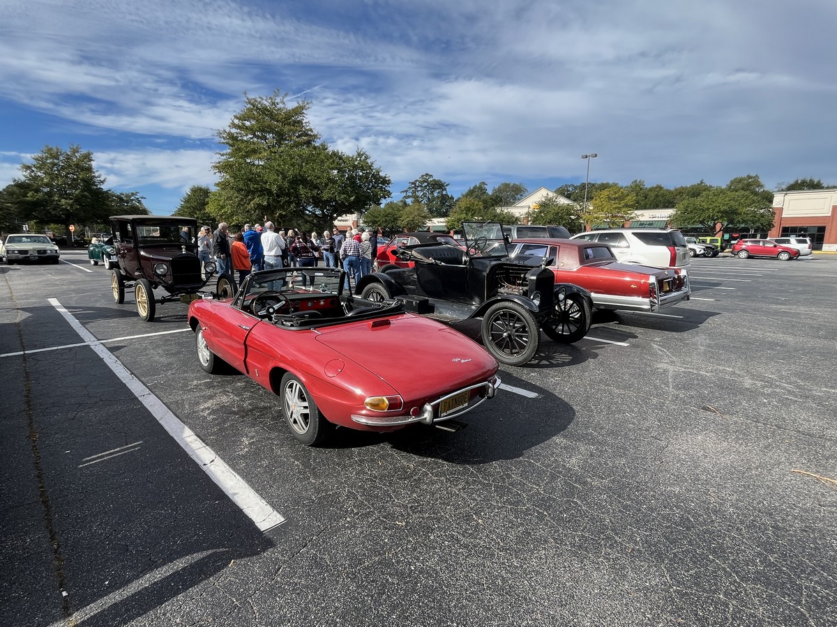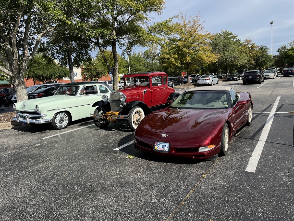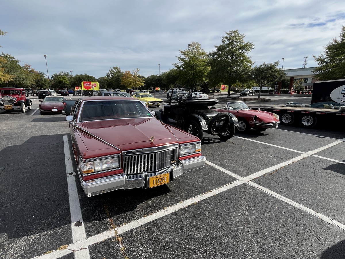 | October 18, 2025 - TRAACA Square Car Tour - Great weather and lots of variety made for an excellent Square Car Tour, put together this year by Richard Hall and Harry Park. We had three of the 'Square' cars plus something from most decades taking part. The group started off in the Kroger parking lot at the junction of Centerville Turnpike and Mount Pleasant Road in Chesapeake, then rolled through parts of Virginia Beach and Chesapeake. A stop at the Northwest River Park got cut a bit short when most of the parking was tied up by an unexpected event, but we rolled through the activity with almost no stoplights or traffic. The 57-mile round trip brought us back to the shopping center that we started from, and ended at Los Primos Mexican Restaurant. Several new vehicles showed up for the tour, including a 1927 Model T Ford under restoration, and Keith Colonna's 1940 Lincoln Zephyr cabriolet. Other people on the tour included Tony Miller in his 1925 Model T Ford, Harry Boone in his 1930 Ford Model A coupe, Bob Stein and guest Jennifer Beach in his 1949 Nash Ambassador, Dan and Chris Ciccone in their 1950 Ford convertible, Harry and Tammy Park with guest Aubrey Austin in their 1953 Ford Custom Sedan, Scott Davies and his 1958 Corvette, Skip Patnode in his somewhat dented 1966 Alfa Romeo, Donald Grosz with his 1968 Oldsmobile 98, TRAACA President Bill Treadwell in his 1969 Camaro convertible, Riley Best with guest F.J. WIlliams in his 1971 Plymouth Satellite, Mickey and Toni McChesney in their 1982 Buick Riviera convertible, Nick Smith in his 1991 Cadillac Fleetwood, Bob and Dot Parrish in their 2003 Corvette, Mark Bischoff in his 2004 Chevrolet Suburban, Rad and Marge Tillet in their 2006 Cadillac, and Tyler Gimbert in his 2012 Jaguar. Thanks to the event organizers, and to all who participated. |