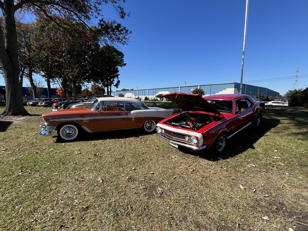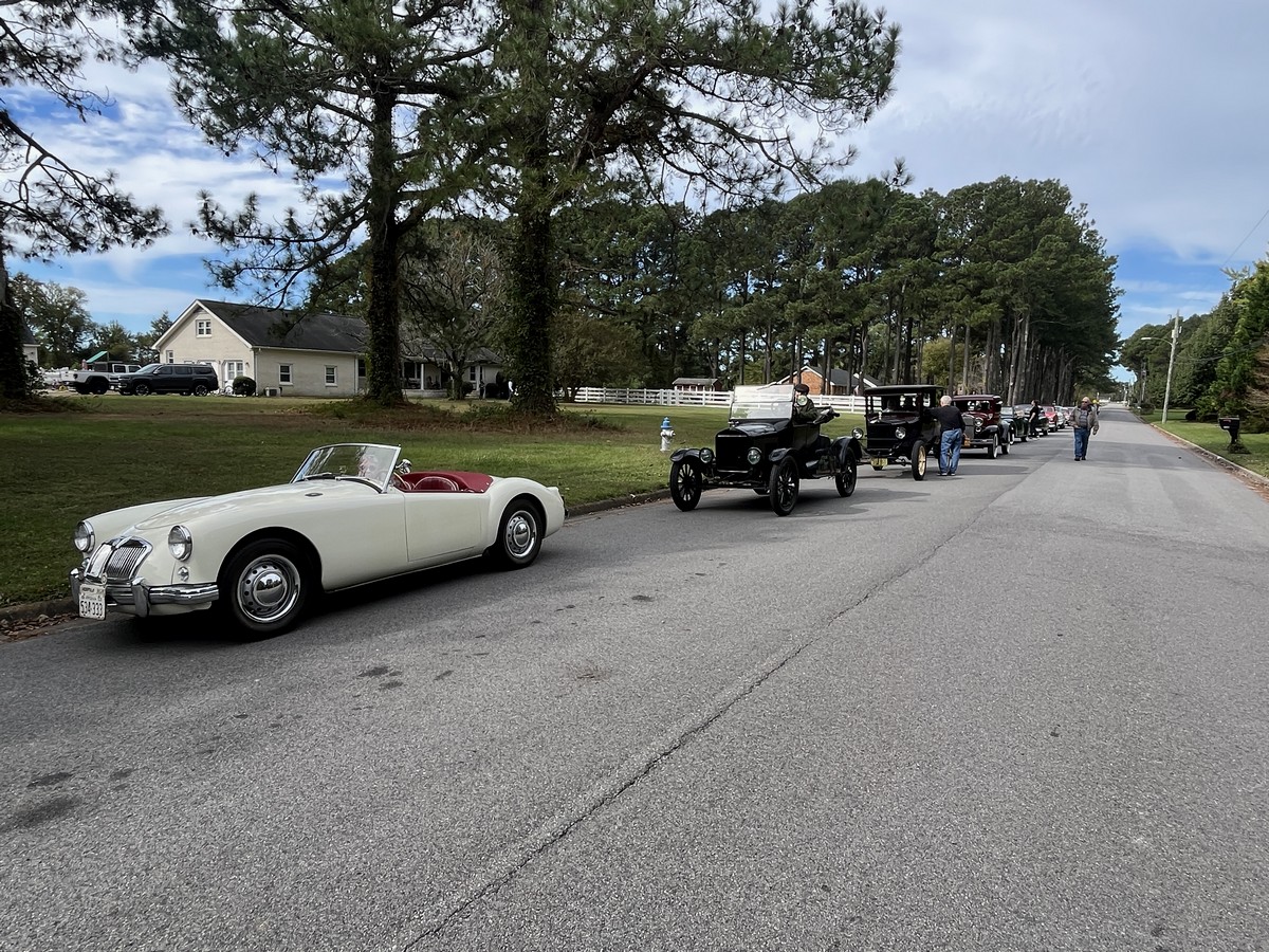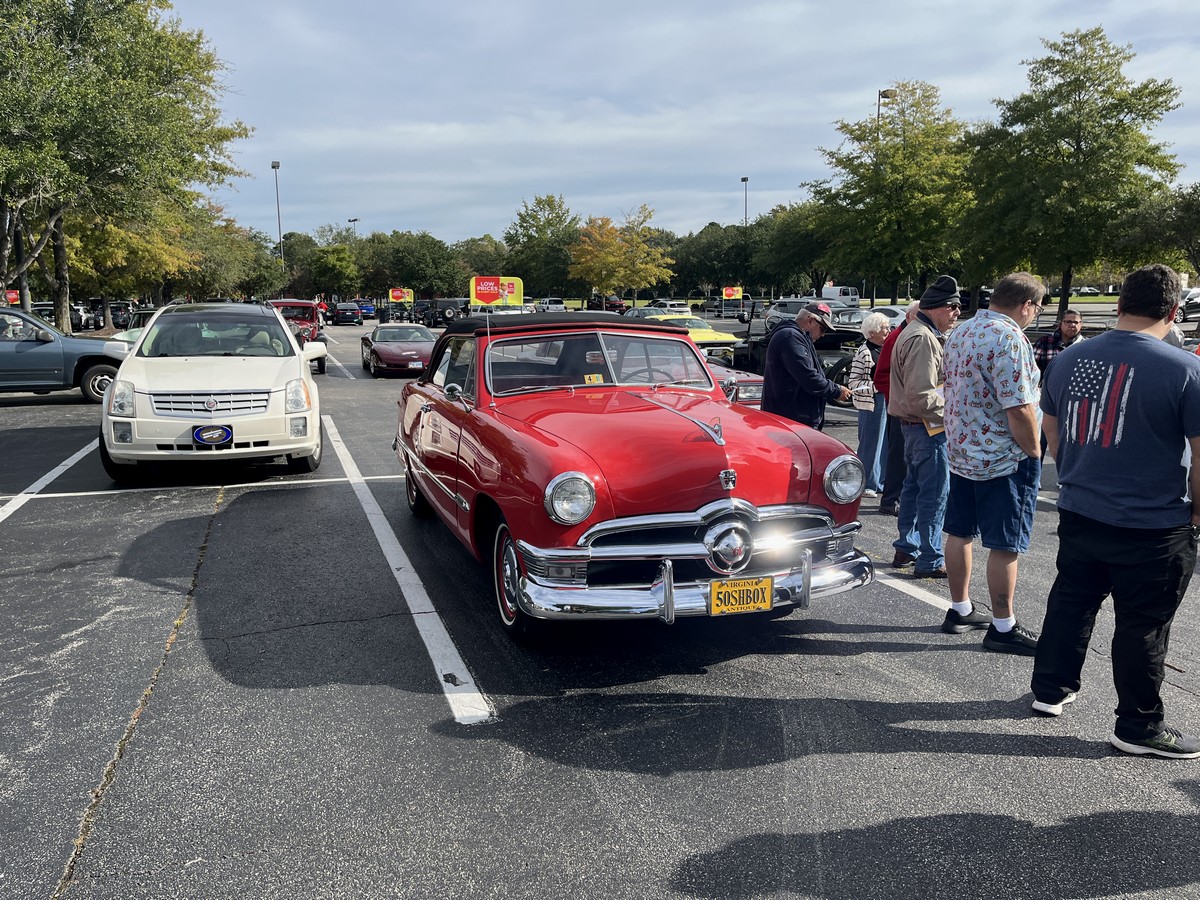 | October 18, 2025 - TRAACA Square Car Tour - Great weather and lots of variety made for an excellent Square Car Tour, put together this year by Richard Hall and Harry Park. We had three of the 'Square' cars plus something from most decades taking part. The group started off in the Kroger parking lot at the junction of Centerville Turnpike and Mount Pleasant Road in Chesapeake, then rolled through parts of Virginia Beach and Chesapeake. A stop at the Northwest River Park got cut a bit short when most of the parking was tied up by an unexpected event, but we rolled through the activity with almost no stoplights or traffic. The 57-mile round trip brought us back to the shopping center that we started from, and ended at Los Primos Mexican Restaurant. Several new vehicles showed up for the tour, including a 1927 Model T Ford under restoration, and Keith Colonna's 1940 Lincoln Zephyr cabriolet. Other people on the tour included Tony Miller in his 1925 Model T Ford, Harry Boone in his 1930 Ford Model A coupe, Bob Stein and guest Jennifer Beach in his 1949 Nash Ambassador, Dan and Chris Ciccone in their 1950 Ford convertible, Harry and Tammy Park with guest Aubrey Austin in their 1953 Ford Custom Sedan, Scott Davies and his 1958 Corvette, Skip Patnode in his somewhat dented 1966 Alfa Romeo, Donald Grosz with his 1968 Oldsmobile 98, TRAACA President Bill Treadwell in his 1969 Camaro convertible, Riley Best with guest F.J. WIlliams in his 1971 Plymouth Satellite, Mickey and Toni McChesney in their 1982 Buick Riviera convertible, Nick Smith in his 1991 Cadillac Fleetwood, Bob and Dot Parrish in their 2003 Corvette, Mark Bischoff in his 2004 Chevrolet Suburban, Rad and Marge Tillet in their 2006 Cadillac, and Tyler Gimbert in his 2012 Jaguar. Thanks to the event organizers, and to all who participated. |