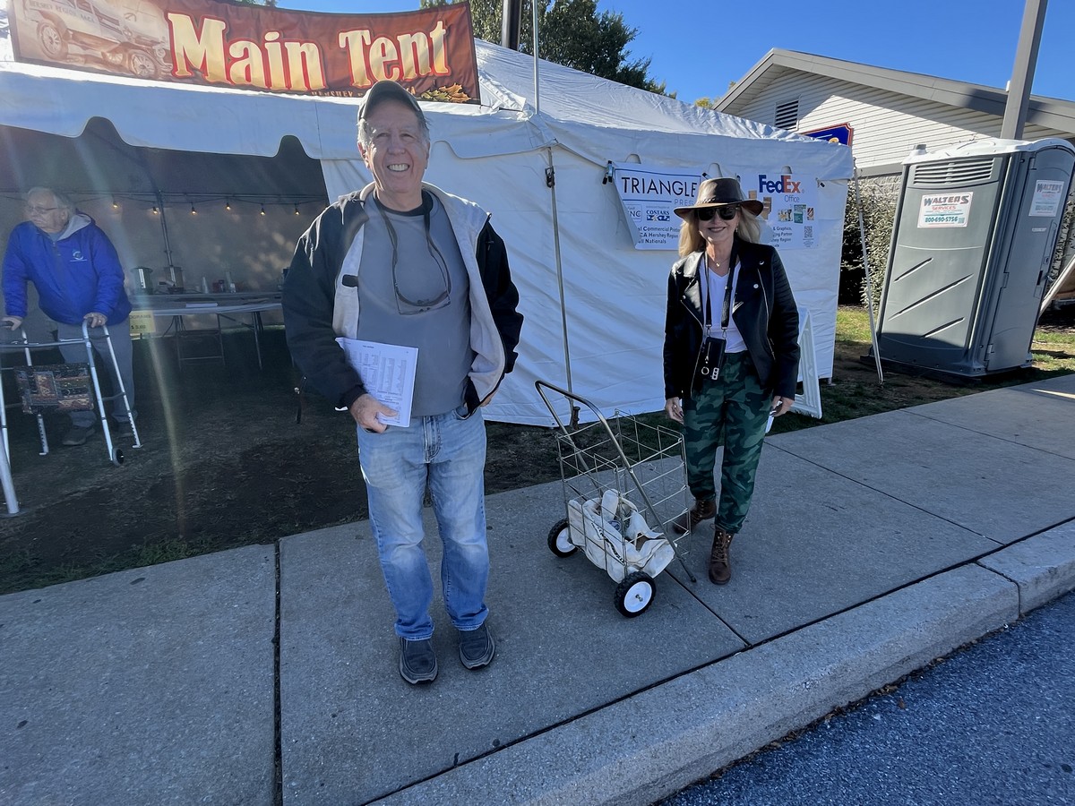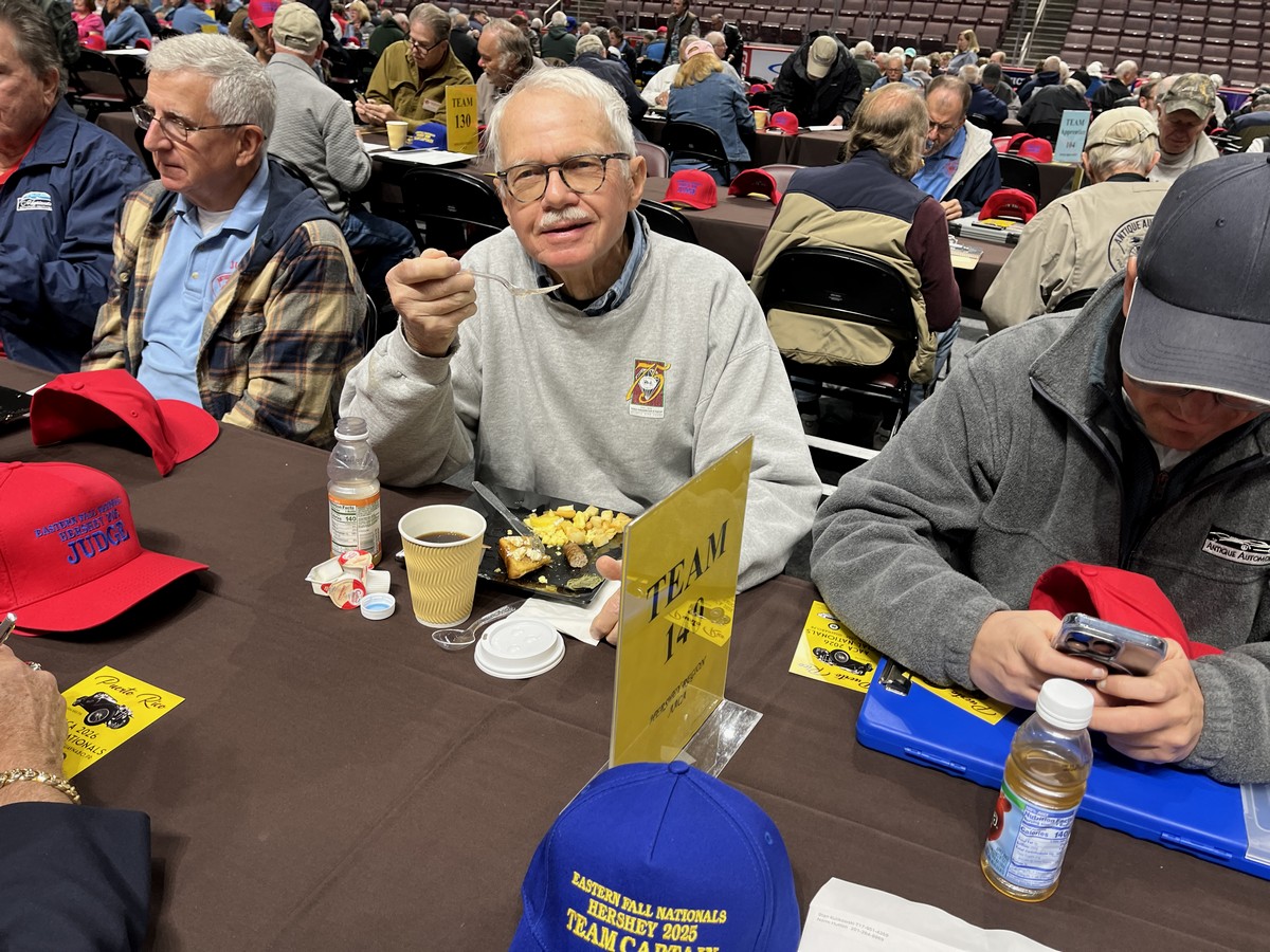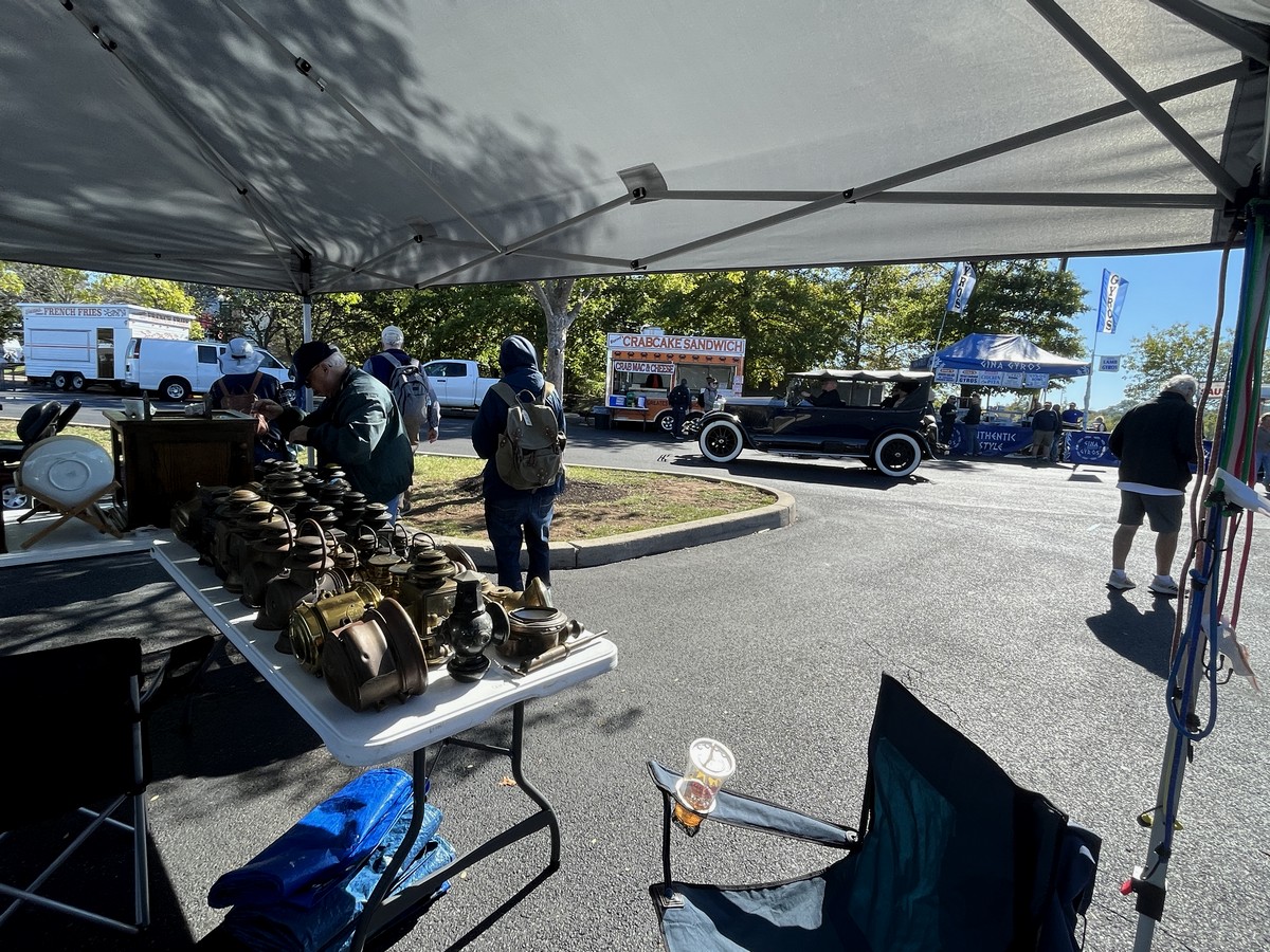 | October 10, 2025 - AACA Eastern Fall Meet - HERSHEY! - Pretty much perfect weather graced most of the swap meet and car show at the 2025 Hershey Swap Meet and Show held at the Hershey Park facility. A lot of the spaces were empty this year, prompting concerns that the mostly-vacant Red Field will be discontinued next year. However, there were still some great items available, as well as some treasures that came from a place near Hershey! TRAACA also had a big presence on the judging side, with Bill and Linda Treadwell, Al and Sharon Mercer, Terry and Sue Bond, Bob and Dot Parrish, Sam Kern, Bob Stein, Tom Cox, Jim and Donna Elliott, and Bill Coburn among this year's judging teams. Terry and Sue Bond and Bob and Dot Parrish were awarded perfect attendance for all of the 2025 AACA meets! Tony Scarpelli received an AACA Senior Award for his 1965 Pontiac GTO convertible. More club members were out in the swap meet, a few selling but mostly buying parts, including Leslie Scarpelli, Chip Woolford, Richard Hall, Riley Best, Barry Basnight, Jerry Adams, and Mark Bischoff. TRAACA members and friends got together Wednesday night at Fenicci's Italian Restaurant where Richard Hall was presented with a card honoring his 50th trip to Hershey, and could be seen gathering around Terry and Sue Bond's tent in the vendor field. It was great to have a dry and sunny Hershey! (Pictures by Leslie Scarpelli, Chip Woolford, and Bob Stein). |