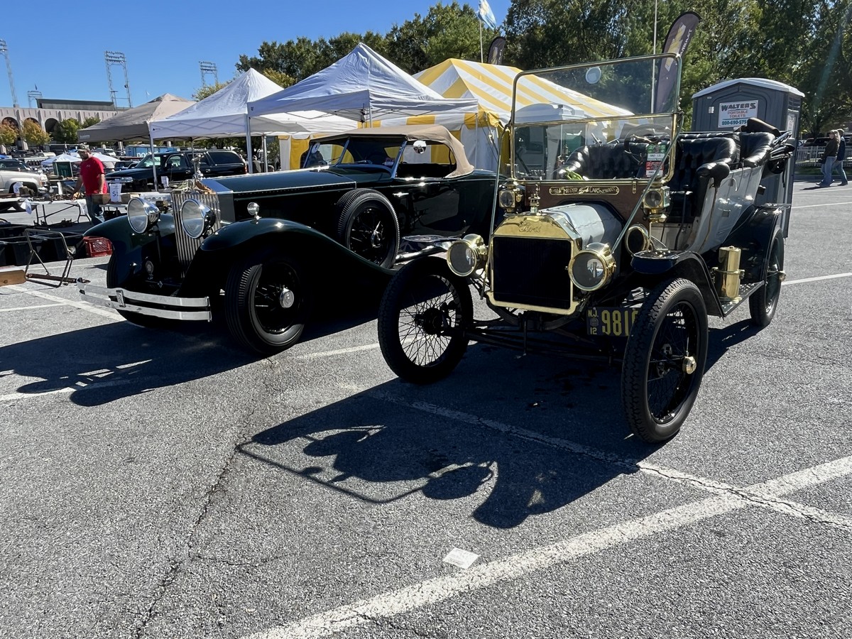 | May 17, 2025 - Old Dominion Meet Association Show - The Old Dominion Meet Association, a non-geographic region of AACA that encompasses all of the regions and chapters in Virginia, held its 2025 Show today at the Keystone Tractor Museum in Colonial Heights VA. TRAACA members were out in full force, bringing vehicles, judging and running admin, and just enjoying the meet. Vehicles from our region included the 1909 Rambler Model 44 of Reggie and Cindy Nash, Sam Kern and Judy Harding's 1925 Franklin 11-A sedan, Dwight Shaubach's 1929 Duesenberg J-112 and 1930 Duesenberg LeGrand J-436, Jim Stansbury's 1940 LasSalle sedan, Susan Bond's 1948 MG TC, Bob Stein's 1956 Ford Thunderbird, one of Keith Colonna's 1956 Lincoln Mark IIs, Tom Cox's 1960 Oldsmobile 88 coupe, Rick Seaman's 1964 Plymouth Barracuda, the 1965 Rolls Royce Silver Cloud of Tim Hund, Tony Scarpelli's 1965 Pontiac GTO convertible, Dalton Williford's 1967 Pontiac GTO, Hilary Pavlidis' 1967 Cougar XR-7, the 1967 Alfa Romeo Duetto of Skip Patnode, Bill and Linda Treadwell's 1969 Chevrolet Camaro convertible, Susan Bond's 1974 MGB-GT, Bill Coburn's 1985 Chevrolet Camaro, and Ken and Barbara Talley's 1992 Buick Roadmaster sedan. The region also provided support for judging and administration with Richard and Sandy Hall, Tom Cox, Bob and Dot Parrish, Dan and Chris Ciccone, Sue Bond, Bob Stein, Bill and Linda Treadwell, and Bill Coburn all taking roles. Harry Park had a catastrophic tire failure that kept his 1953 Ford off the field, and Tony Miller drove his 1925 Model T Ford all the way from Portsmouth just for fun. Also seen on the field was Kelly Adams. Not surprisingly, TRAACA took home the coveted Old Dominion Trophy for the most participants in this year's meet! Meet results will be provided as soon as they are known. (photos by Bob Stein and Sue Bond) |