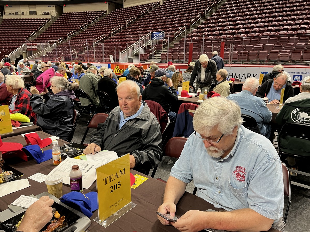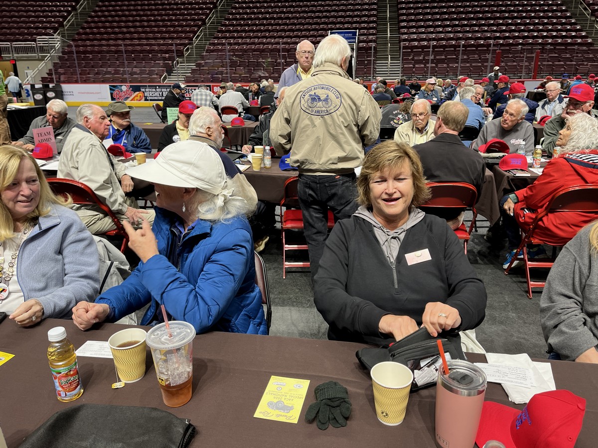 | November 21, 2024 - TRAACA Annual Silent Auction - Our annual Silent Auction was held at the Holiday Inn Convention Center in Virginia Beach, and had more than 40 members bringing and buying 'treasures' for the club. Items ranged from car books and tools to a large philodendron, and included a framed car print and a 1965 Ford Dealer Ordering Book for 1965 pickups. The evening started with a buffet dinner that featured bar-b-que beef and roast or fried chicken, mashed potatoes, broccoli and cauliflower, and salad. After that President Bill Treadwell held a brief business meeting where the 2025 TRAACA Officers and Board were voted in by acclimation. The rest of the evening was spent looking, bidding, and rechecking to see if you were still high bidder on what you wanted. Thanks to Tammy and Harry Park and Chris Ciccone for getting this set up! |