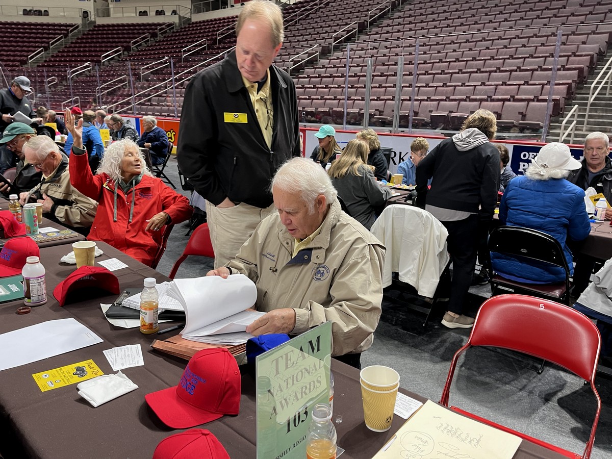 | April 3-5, 2025 - AACA Southeastern Spring Nationals and the Charlotte Auto Fair - Excellent weather and good friends made for a great time at this year's Charlotte Auto Fair. The Auto Fair was down a bit more in size, with parking taking over the upper section of red field and a lot of empty spaces elsewhere, so that the entire event could be walked in a few hours. However, members took advantage of the antique shops and collector cars sales locations in and around Concord (actual location of the track) and found some great items. You could even buy a Buffalo Head originally priced at $3,899 for the low-low price of only $295! (Nobody took advantage of the markdown). Seen at the Flea Market were Chris Ciccone, Paul Fuqua, Frank Linse, and David and Valerie Dillahunt. As usual, Tidewater Region was well represented at the judging breakfast. Tom Cox, Jim Elliott, Terry Bond, and Bob Parrish were a large part of the National Award team, with Donna Elliott, Sue Bond, and Dot Parrish working administration. Bill Coburn, Dan Ciccone, Bill Treadwell, Harry Park, and Bob Stein were all part of judging teams. Bill Coburn got his 75th judging credit plaque, Tom Cox was awarded his plaque for 225 credits, Jim Elliott received his plaque for 250 credits, and Terry Bond was recognized for having 300 judging credits! On the field, Jim and Donna Elliott brought their 1933 Cadillac LaSalle for its Senior, Al Swenson had his 1962 International Scout 80 4x4 up for its Senior award, Bill Treadwell had his 1969 Camaro out for a Preservation, and Bob Stein brought his recently acquired 1993 Buick Century wagon for its Junior. Though it was windy at times, overall weather was pleasant and even a bit warm, which made shorts and short sleeves popular attire. (Photos by Harry Park and Bob Stein) |