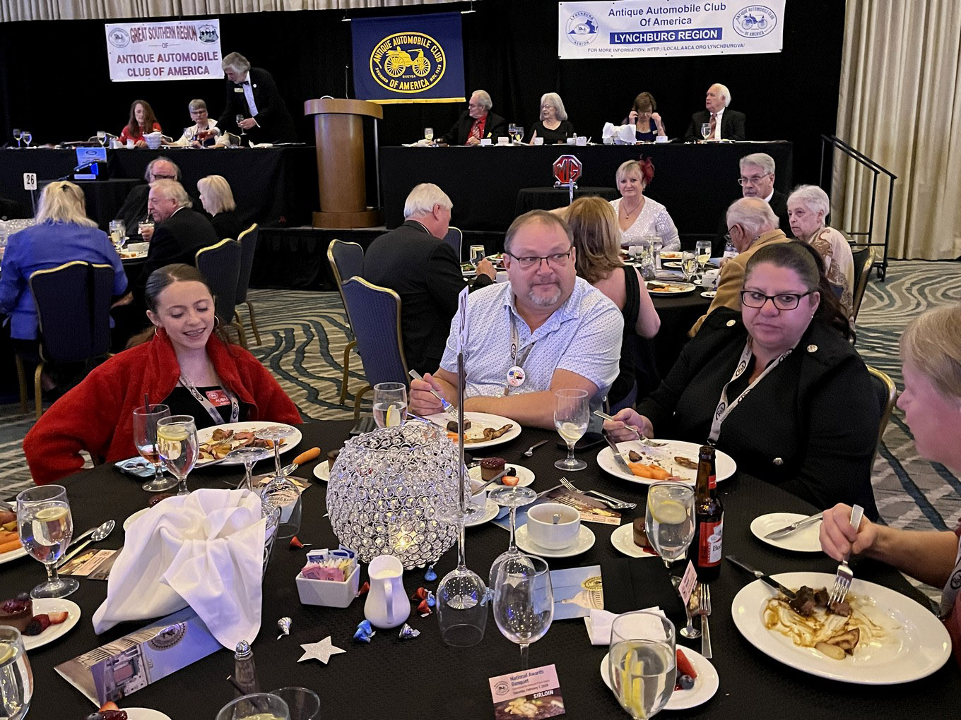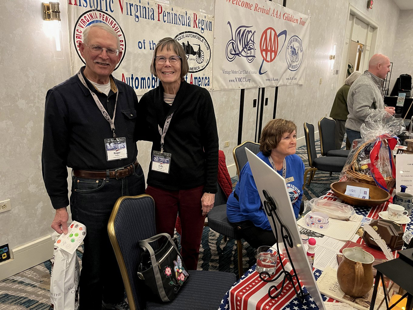 | January 10, 2026 - TRAACA Awards and Installation Banquet - This year's Installation and Awards banquet was held Holiday Inn Convention Center with record-breaking warm temperatures, unlike last year where we had to postpone a few weeks. President Bill Treadwell started off with introductions, and had Nick Smith provide the benediction. Following a buffet dinner, Bill and Vice-President Harry Park presented awards the awards for 2025. Jim and Donna Elliott repeated their win of the Bartlett Bowl, and the Beaulieu Cup was awarded to Rick Seaman for his 1964 Plymouth Barracuda. The Century Award went to Tony Miller and his 1925 Model T Ford and Sam Kern for his 1925 Franklin. The Century participation award again went to Reggie and Cindy Nash. Bob Stein received the Duryea Award, and the Ivie Lister Award went to Tim Hund. Tammy Park received the Lalique Award, while the Merritt Horne Participation Award went to Linda Pellerin. The Mudflap Award went to Aubrey Austin, with the Overland Award going to Jim and Donna Elliott. The Tidewater Region President's Award went to Dan and Chris Ciccone, and Chip Woolford received the Tidewater Region Restoration Award. The Spark Plug Award went to two individuals this year: Jerry Adams and Holly Forester. The Dwight Schaubach Award, which went to Dalton and Carroll Williford for their 1967 Pontiac GTO. Although we didn't give it out last year, this year's Hard Luck Trophy did have a recipient - Skip Patnode. Then Linda Pellerin then took over for the installation of 2026 TRAACA officers. Using borrowed 'props' to illustrate their function, Linda went over each position and its importance to the region. Bill Treadwell (rear view mirror) is the President Emeritus providing the knowledge of where we have been. The four Board Members Skip Patnode, Rick Seaman, Wayne Milligan, and Nick Smith (spark plugs) convert board decisions to action. Treasurer Chris Ciccone (distributor cap) controls and manages the cash flow to keep the club going. Secretary Jerry Adams (water pump) directs and records the actions of the club while Vice-President Mike Haag was is the fuel that keeps us going. Which left President Harry Park (crank and key) as the one who ultimately guides the club's direction during the year. With the awards and installation of new officers completed, President Park closed the meeting. |