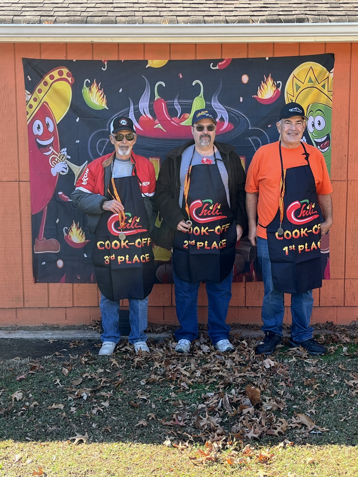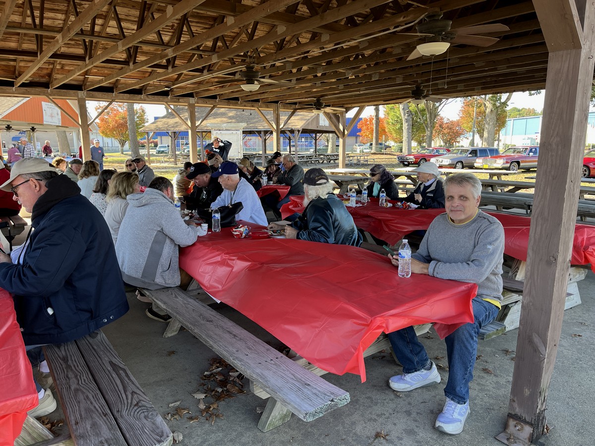 | November 1, 2025 - TRAACA Chili Cookoff - More than 60 TRAACA members and friends showed up at the Khedive Picnic Area in Chesapeake for our annual Chili Cookoff. The weather was perfect, cool enough for light jackets and sweatshirts in the morning, warming up to shirtsleeve weather in the afternoon, with bright sunshine throughout the day. We had six different chilies to judge, as well as hot dogs provided by Dan and Chris Ciccone on a genuine restaurant cooker, and bar-b-que made by Charlie and Barbara Edwards. Besides the meats, we have a wide variety of side dishes and desserts that ranged from macaroni and cheese to key lime pie. Pretty weather meant many members brought out old cars. Tony Miller had his 1925 Model T Ford, Keith Colonna drove his 1940 Lincoln Zephyr (later the Continental) cabriolet, Bob Stein brought his 1941 Packard 110 (Bella), Alfonso and Patrezia Ludovici had their 1949 Mercury Eight, Barry and Mary Ellen Basnight drove their 1950 Jeepster, Bruce Sedel had his 1952 Packard 200, Casey and Mary-Ellen Bostjancic came in their 1956 Chevrolet Bel Air, Scott Davies drove his 1958 Corvette convertible, Hilary Pavlidis and guests came in her 1967 Mercury Cougar, Bo Bostjancic had his 1967 Camaro, Harry and Tammy Park brought their 1970 Chevelle SS convertible, Larry Goughan drove his 1971 Dodge Charger R/T, Bill and Linda Treadwell arrived in their 1973 Oldsmobile Cutlass 442, Terry and Sue Bond came in their 1974 MGB-GT, Riley Best had his 1979 (?) Dodge Ram pickup, Mickey and Toni McChesney brought their 1984 Oldsmobile Delta 88, Nick Smith had his 1991 Cadillac Fleetwood Brougham, Boyd Swartz came in his 1993 Volvo 940 Turbo station wagon, and Fred Cole drove his 1998 Ford Police Interceptor. Other members spotted at the event included Jerry and Ellen Adams, Linda Pellerin, Richard and Sandy Hall, Bob and Dot Parrish, Rad and Marge Tillet, Tyler Gimbert, Harry and Tammy Park (the activity organizers), Rick Seaman, Jack Pavlidis, Skip Patnode, Aubrey Austin, Chip Woolford, Tim and Phyllis Hund, Mike and Denise Haag, Bill and Doug Grosz, and Bill Coburn. After President Bill Treadwell held a brief business meeting to verify the 2026 TRAACA officers and board, the group started eating. When the votes were tallied, Toni McChesney's chili was voted 3rd best (Accepted by husband Mickey), Bill Grosz was awarded 2nd place, with Bob Stein being given 1st place. Many thanks to all who participated, and especially to Tammy Park for getting this organized! |