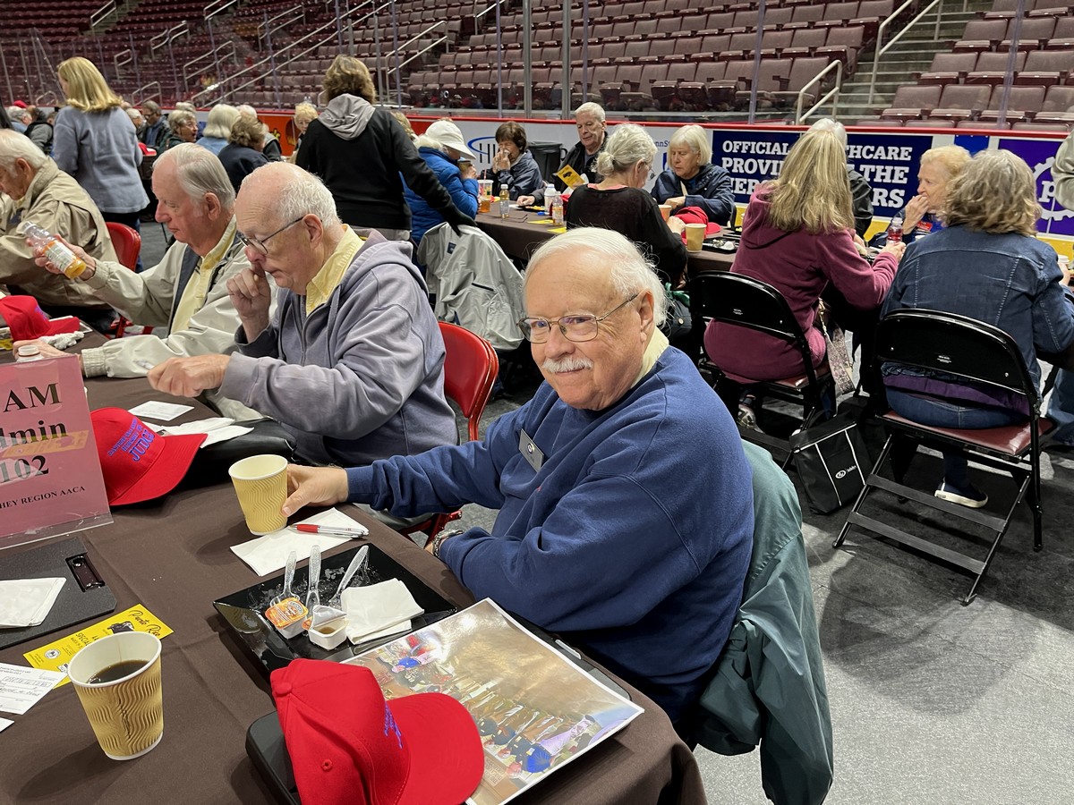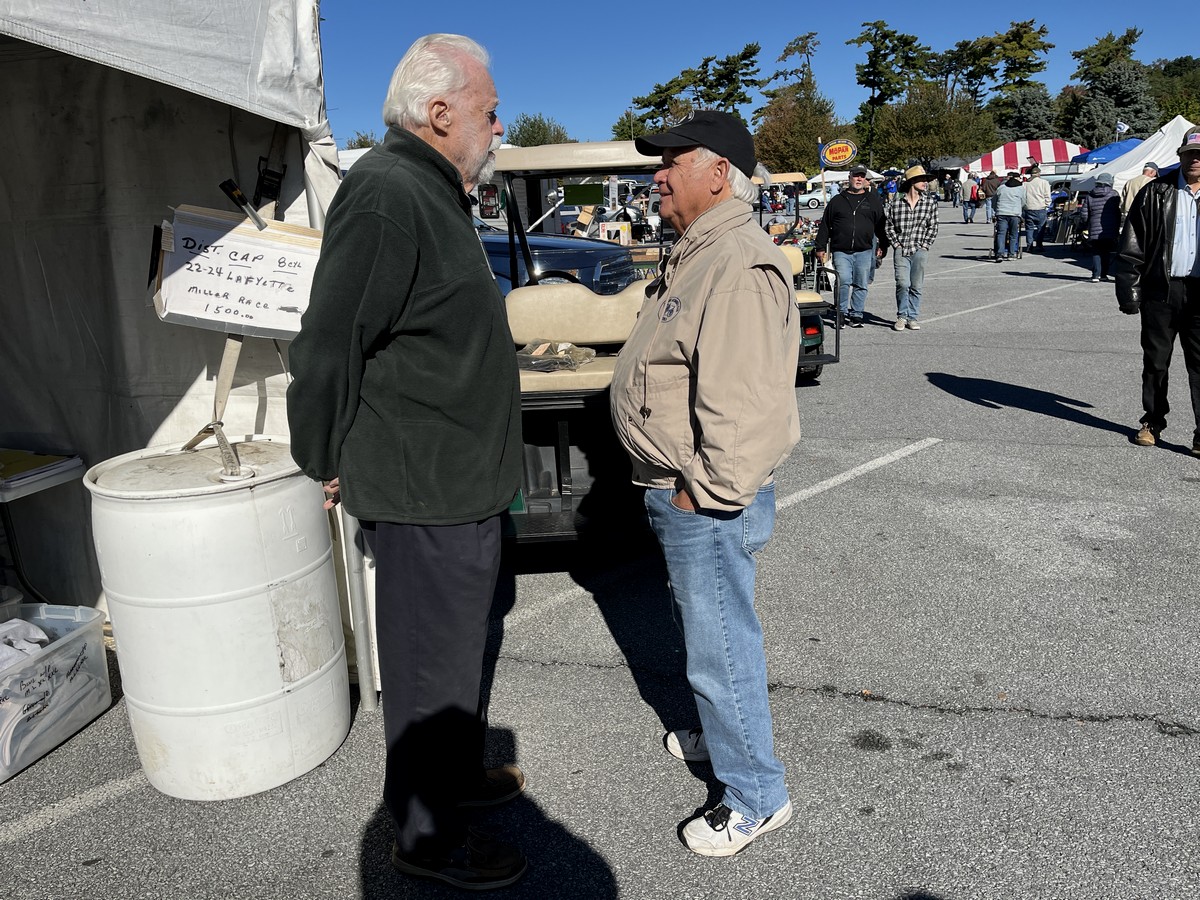 October 10, 2025 - AACA Eastern Fall Meet - HERSHEY! - Pretty much perfect weather graced most of the swap meet and car show at the 2025 Hershey Swap Meet and Show held at the Hershey Park facility. A lot of the spaces were empty this year, prompting concerns that the mostly-vacant Red Field will be discontinued next year. However, there were still some great items available, as well as some treasures that came from a place near Hershey! TRAACA also had a big presence on the judging side, with Bill and Linda Treadwell, Al and Sharon Mercer, Terry and Sue Bond, Bob and Dot Parrish, Sam Kern, Bob Stein, Tom Cox, Jim and Donna Elliott, and Bill Coburn among this year's judging teams. Terry and Sue Bond and Bob and Dot Parrish were awarded perfect attendance for all of the 2025 AACA meets! More club members were out in the swap meet, a few selling but mostly buying parts, including Tony and Leslie Scarpelli, Chip Woolford, Richard Hall, Riley Best, Barry Basnight, Jerry Adams, and Mark Bischoff. TRAACA members and friends got together Wednesday night at Fenicci's Italian Restaurant where Richard Hall was presented with a card honoring his 50th trip to Hershey, and could be seen gathering around Terry and Sue Bond's tent in the vendor field. It was great to have a dry and sunny Hershey! |