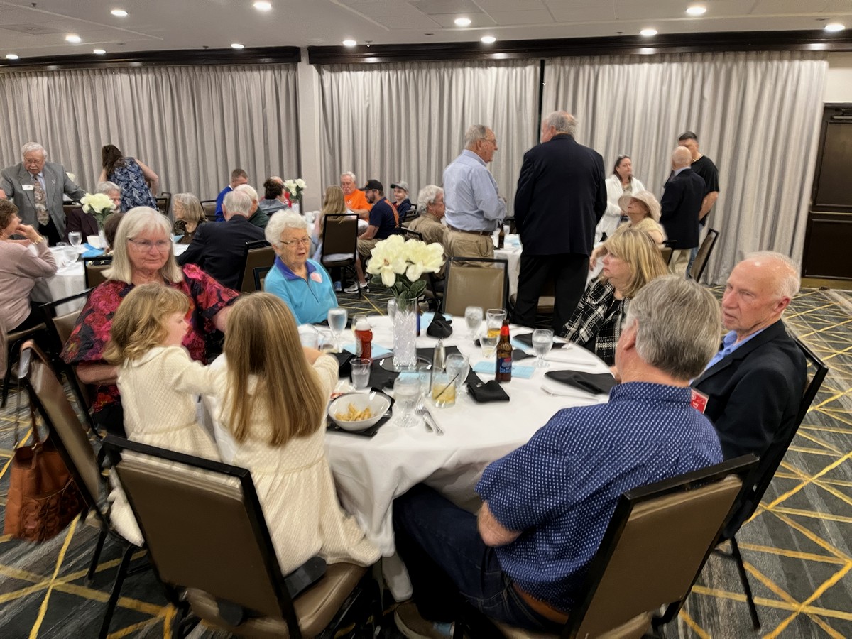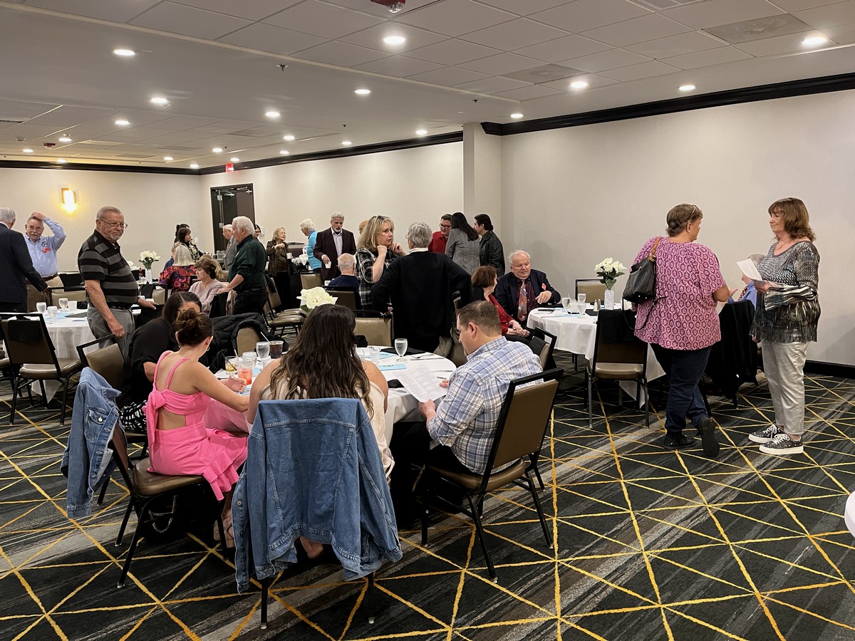 | December 7, 2025 - TRAACA Holiday Party - More than 90 members showed up for our annual Holiday Brunch at the Princess Anne Country Club in Virginia Beach. The weather was very cool but sunny, allowing a great display of antique vehicles parked out in front of the Country Club. Cars included Alfonso and Patrizia Ludovici's 1949 Mercury, Bob Stein's 1949 Nash Ambassador, Scott Davies' 1958 Corvette convertible, Jim and Betty Viller's 1967 Mercedes 230SL, Hilary Pavlidis' 1967 Mercury Cougar, Doug Grosz's 1968 Oldsmobile 98, Wayne Milligan's 1968 Ford LTD, Harry Park's 1970 Chevelle SS convertible, Riley Best's 1971 Plymouth Satellite hardtop, Larry Goughan's 1971 Dodge Charger R/S, Fred Coles's 1988 Toyota Supra, Nick Smith's 1991 Cadillac Fleetwood Brougham, Mickey and Toni McChesney's 1982 Buick Riviera convertible, Joe Formato's 1985 Avanti, Ken and Barbara Talley's 1992 Buick Roadmaster, Boyd Swartz's 1993 940 Turbo Wagon. President Bill Treadwell kicked things off with a few announcements, then Nick Smith provided the blessing, and then it was time to eat! The country club always puts on a spread, and today's brunch included huge cocktail shrimp, prime rib and omelet stations, as well as breakfast fare such as eggs benedict, bacon, cheese grits, and waffles. Following the meal, we tried to match up starting and ending lyrics on stickers provided by Linda Pellerin and Tammy Park, and also worked out crossword puzzles that included such gems as 'What car maker started with a Model A?' (Ford). Many thanks to all for a great event! |